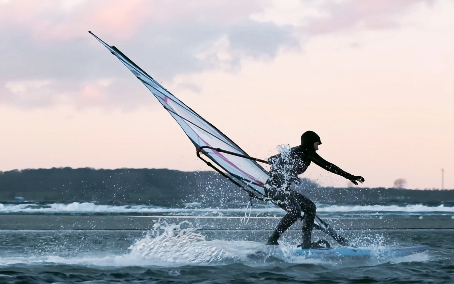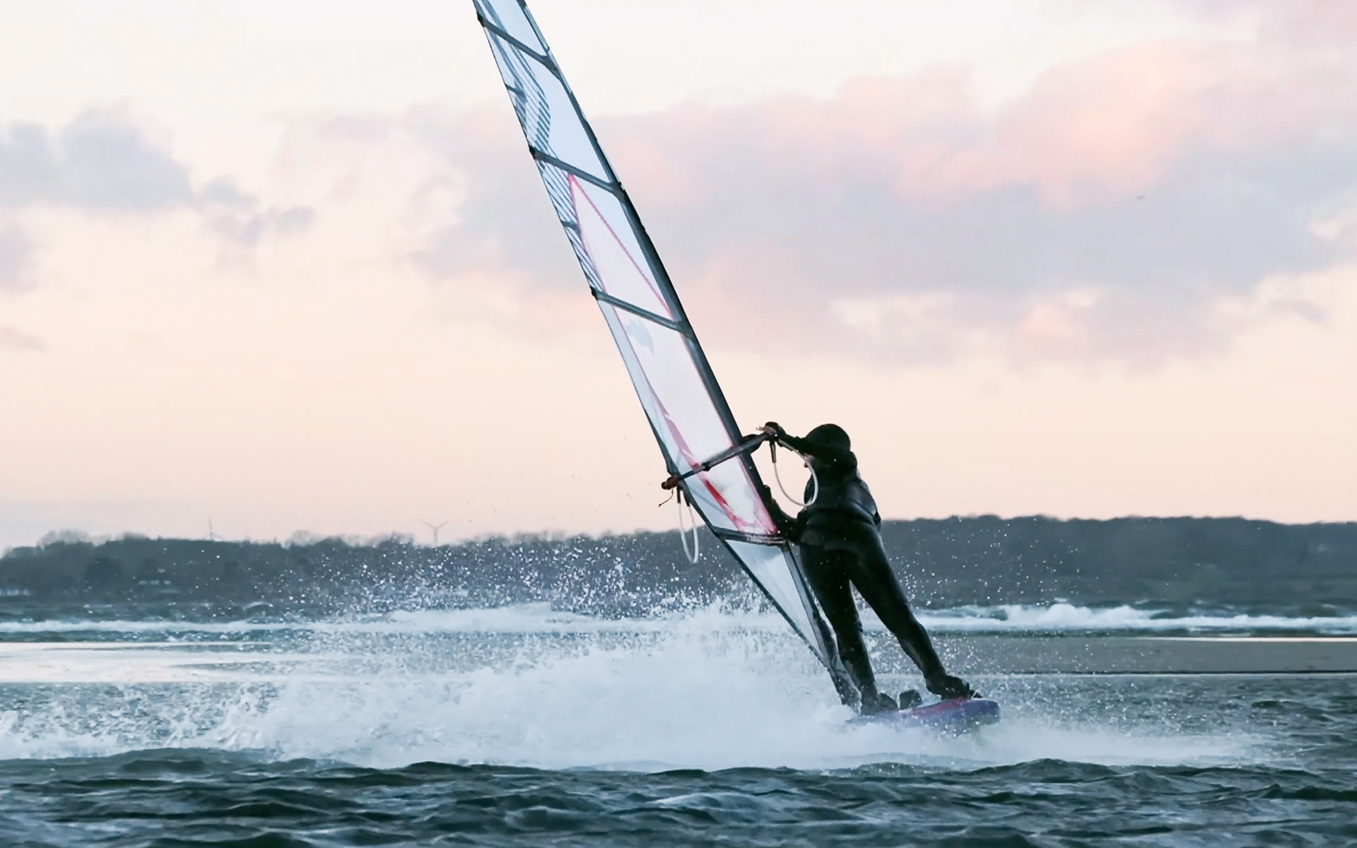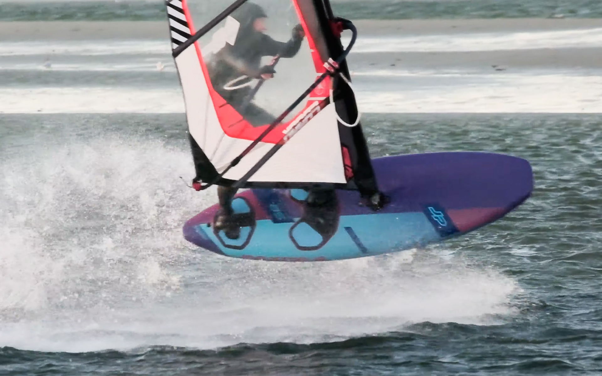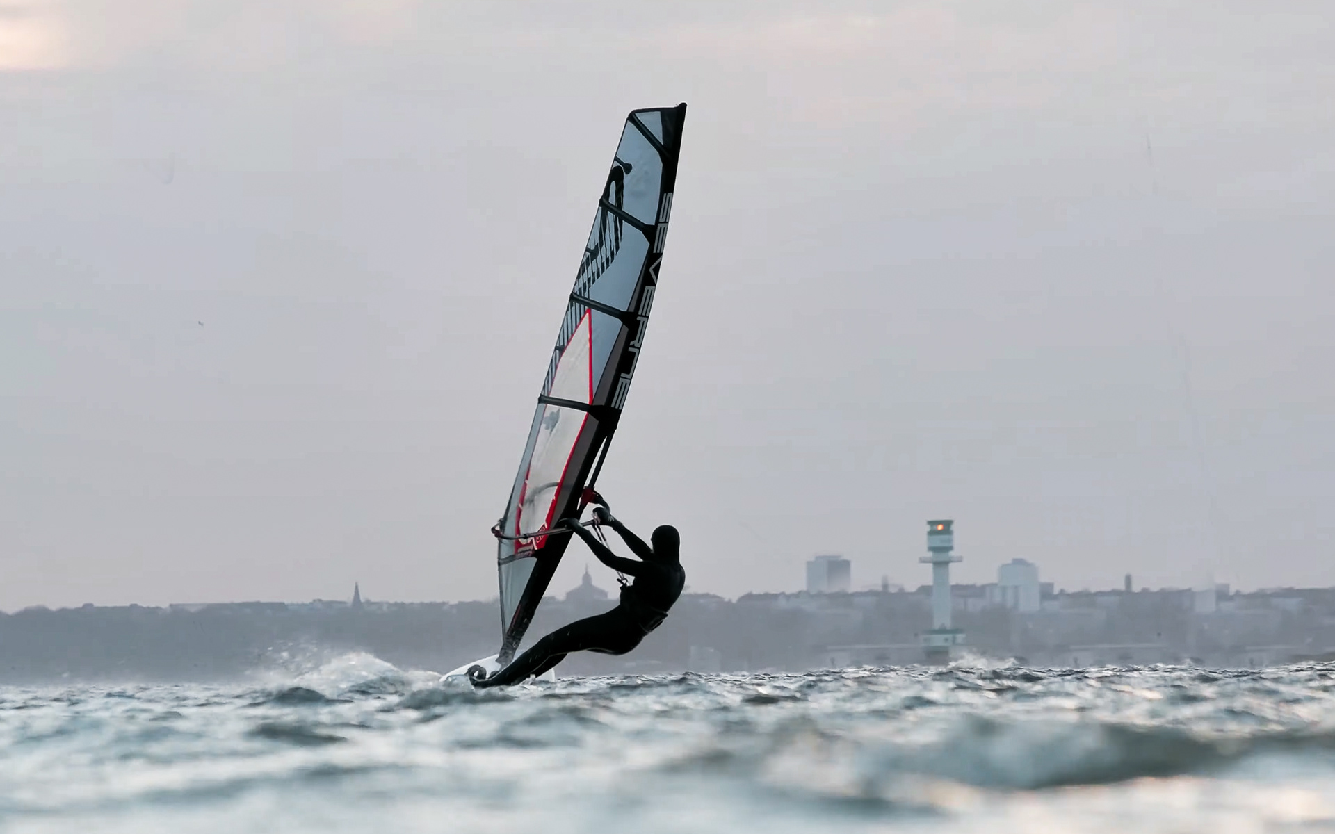 während manche menschen sich bei dem winterlichen wetter kaum aus dem haus trauen, geht elena bei temperaturen um den gefrierpunkt auf's wasser um freestyle windsurfen zu trainieren.